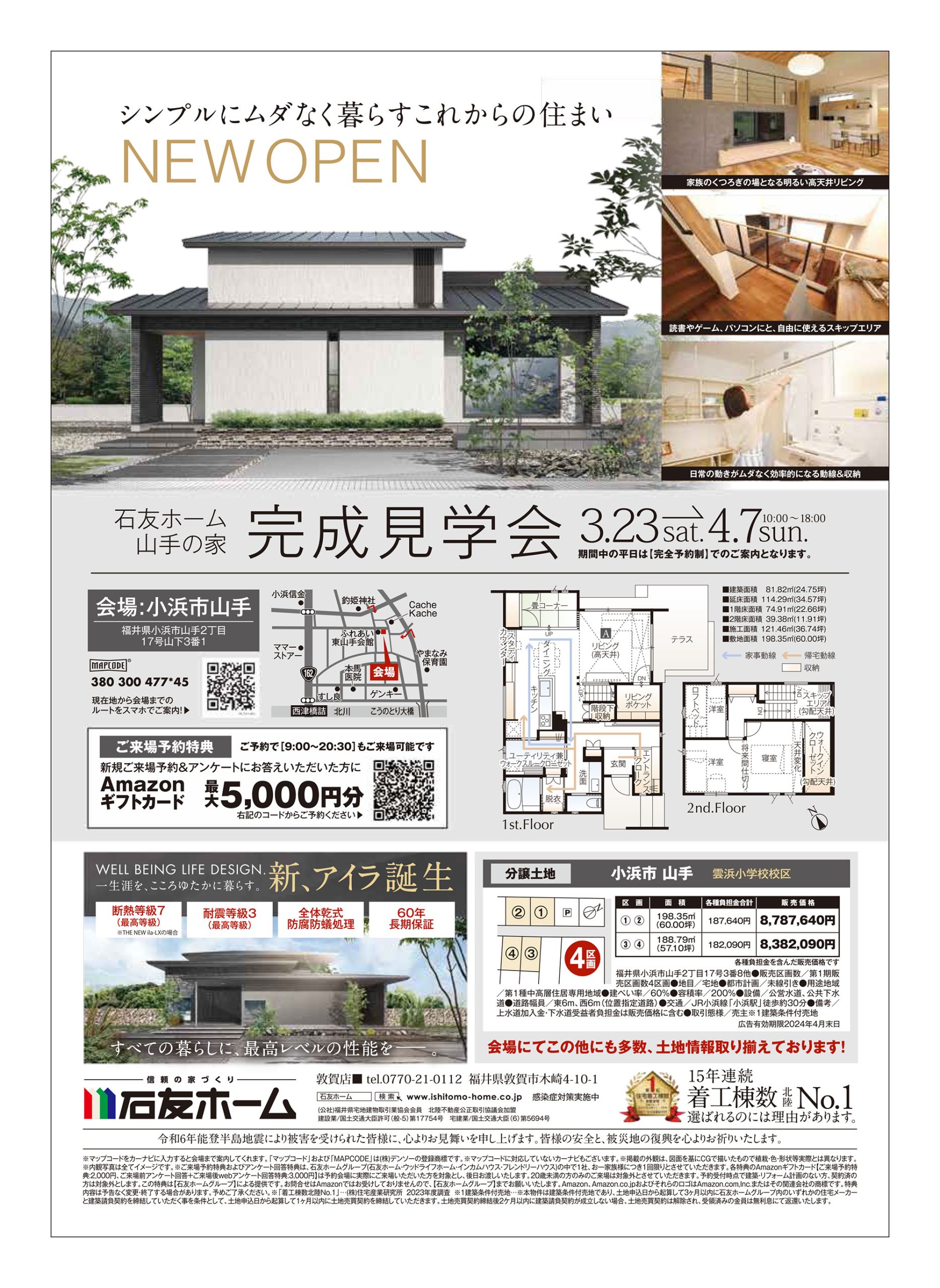 石友ホームのホームページから新規ご来場予約&来場前アンケート&来場後Webアンケートにお答えいただいた方には最大5,000円分のAmazonギフトカードをプレゼント中!