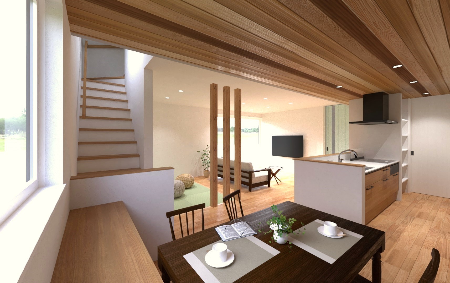 • 木のぬくもりと畳が創る憩いの空間。