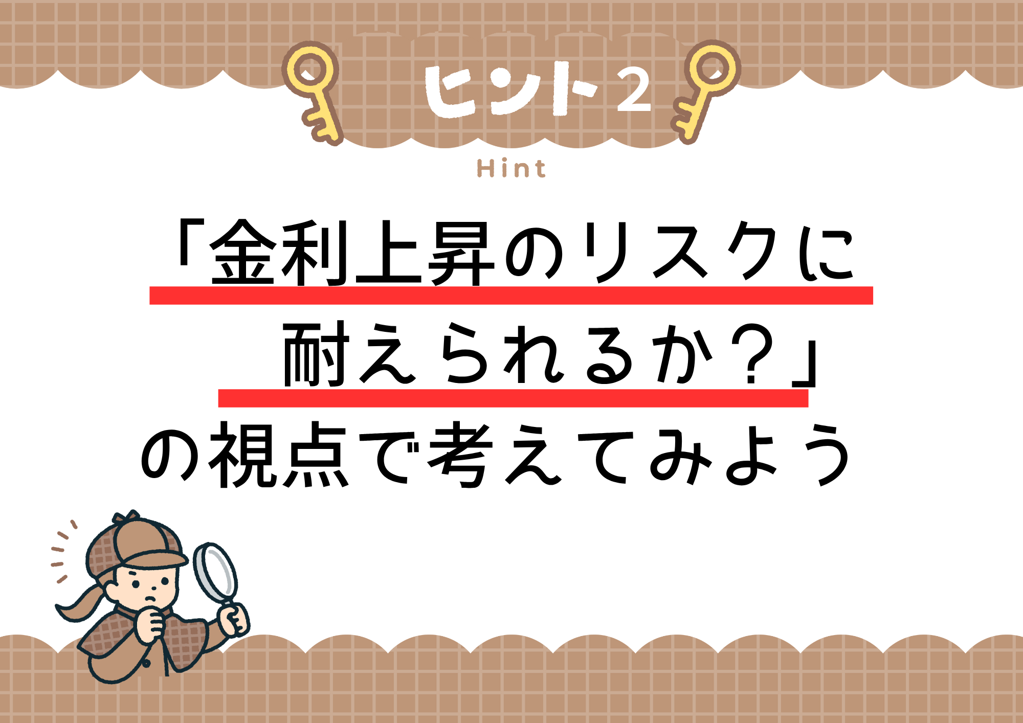 ※ご自身がどれだけ金利上昇リスクに耐えられるのかを判断基準にして考えてみてください。