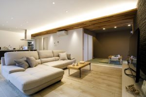 家事動線を目的に応じ分けることで、時短かつ散らかりにくい家を実現。 リビングには大きな窓があることで、光が差し込み 空間が明るく、広く見えます 本物にこだわったインテリアにも注目!自分なりのコーディネートを新しいスタイルにする Bohoテイストの平屋モデルハウスです