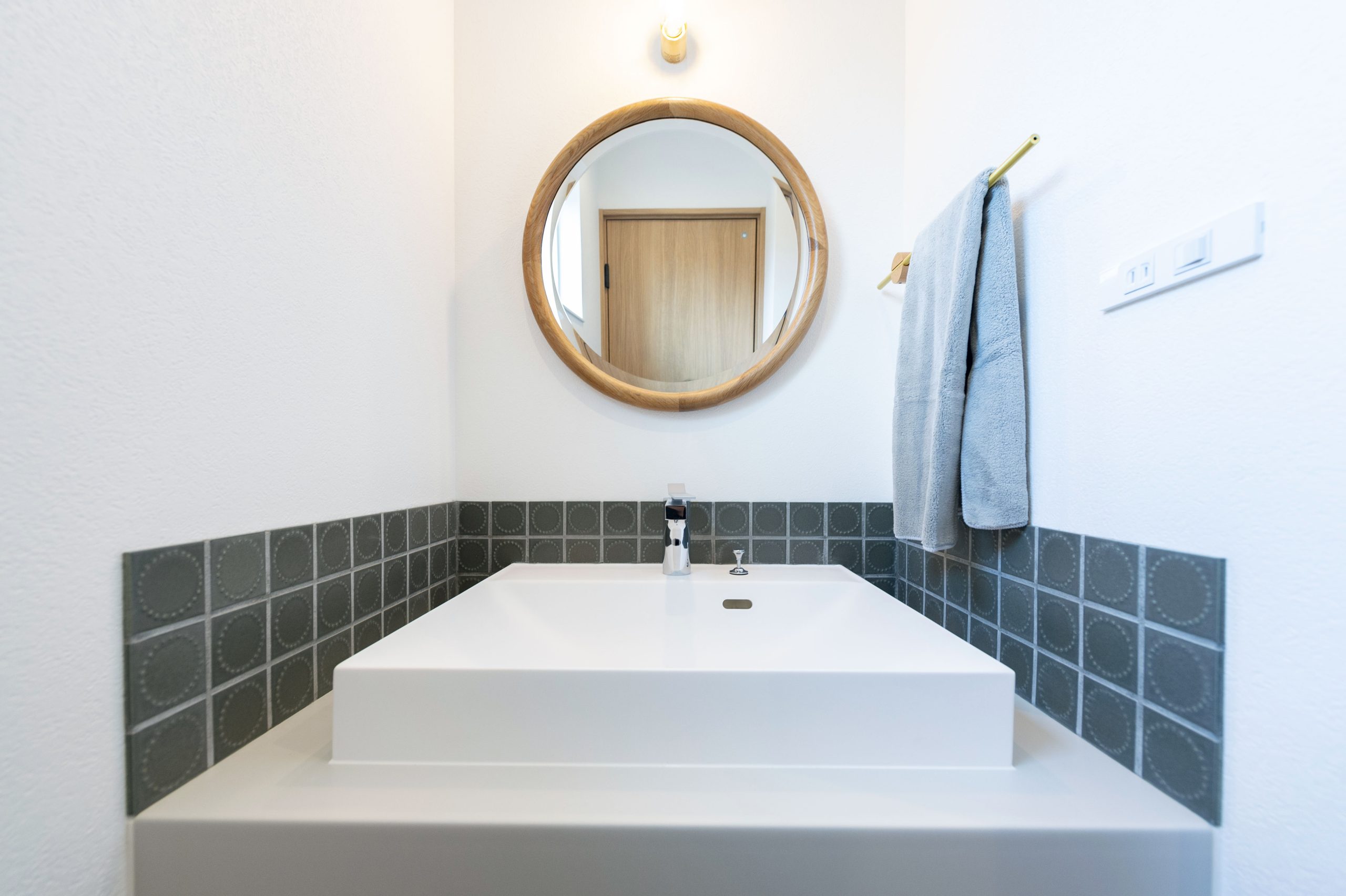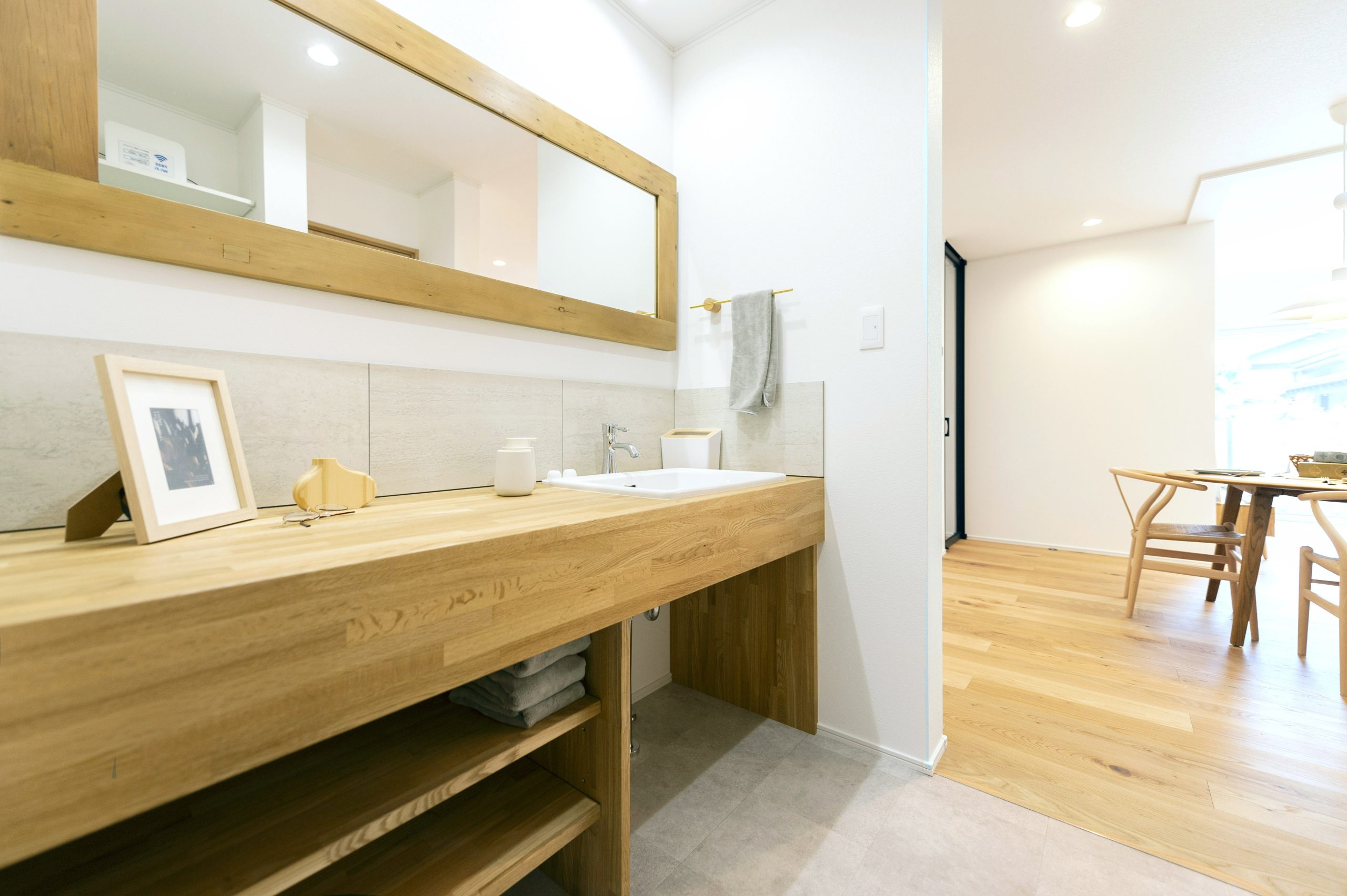 玄関入ってすぐのところに洗面を。