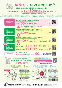 この住宅団地は、近隣に朝日西保育所や糸生小学校などがあり、子育てに最適な環境が整っています。 町が販売する分譲地を購入した方は、条件によっては支援を受けられる場合があります。 詳しくは越前町定住促進課ホームページやお...