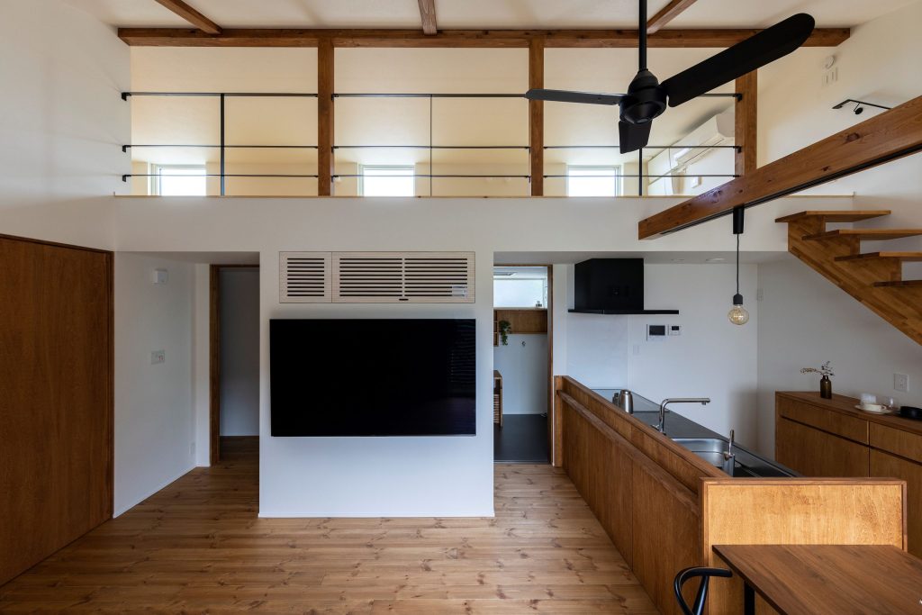 LDKから階段を上がると、小屋裏空間へ。収納や趣味スペースなどに活用できる。(平屋の家)