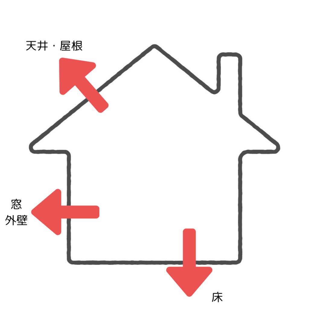 断熱等級やZEH(ネット・ゼロ・エネルギー・ハウス)の基準値となるのが、「UA値(外皮平均熱貫流率)」。図1のように、屋根や壁、窓、床などの外皮から、住宅全体の熱がどれくらい逃げにくいかを数値化したものだ。福井の場合、新築住宅に義務化されている「等級4」のUA値は0.87※以下、最高等級「等級7」の場合は0.26※以下が求められる。