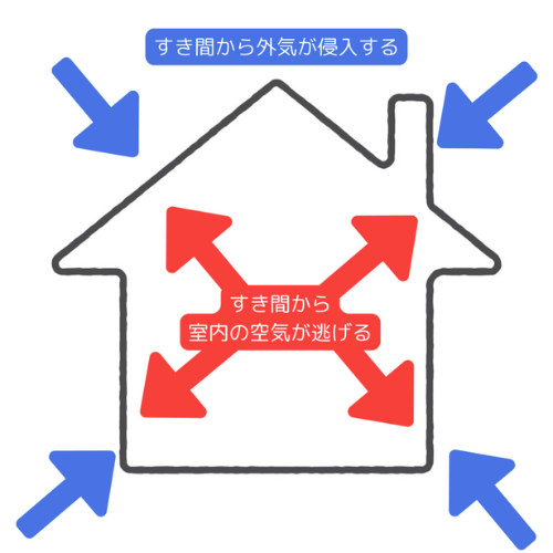「しかしUA値がいくら優秀でも、住宅全体の気密性能を示すC値(すき間相当面積)が伴わなければ、住まいの熱は逃げてしまいます(図2)。たとえるなら、UA値はセーター。分厚いセーターを着ても、冷たい風はセーターを通じて入り込みますよね。ウインドブレーカーの役割といえるC値が大切なのです」