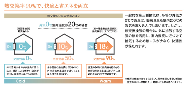 「気密性能が問われるC値とともに、熱が逃げてしまう換気への配慮も重要。当社は冷暖房時に冷気や暖気を逃がさない、熱交換換気システムも標準仕様としています」と貢社長。「換気での熱を再利用することが、環境に優しく快適な暮らしに直結する」と話す。