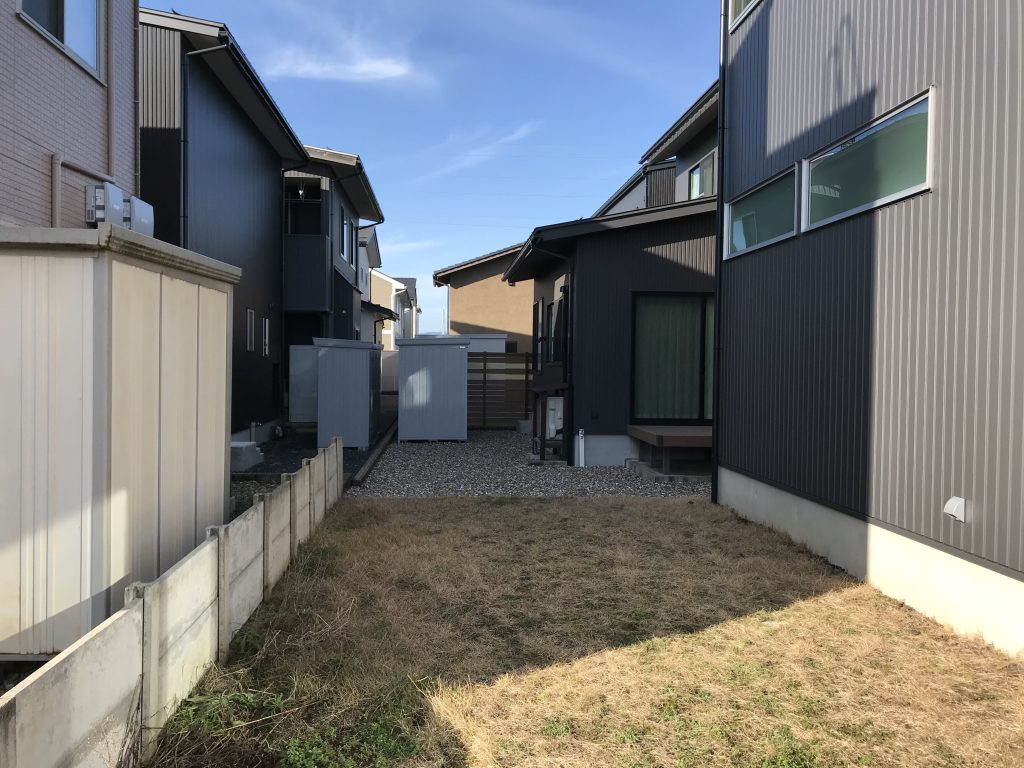 隣地とは、低いフェンスや庭木でゆるやかに遮っている