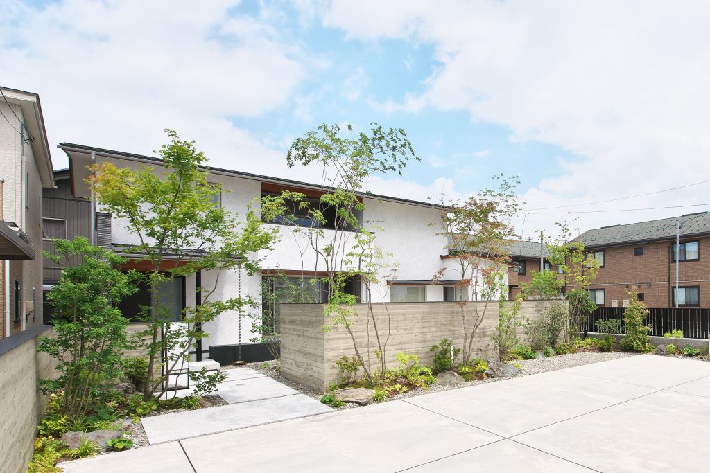「ここは新しい市街地なので、その環境にとけ込みながら里山のような外構をつくりたかった」と、