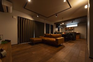 黒が映える!間接照明がステキなホテルライクスタイルメゾンデザイン工房勾配天井と間接照明が魅力の ホテルライクハウス 木に黒が映える大人な雰囲気あふれる ステキなお家です テレビ壁・ダイニングの...