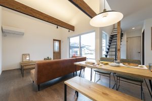木の優しさを感じる開放感抜群なカフェスタイルハウスメゾンデザイン工房リビングの梁が目を引く カフェスタイルのお家 スケルトン階段や、格子窓など お家のいろんなところにこだわりポイントがたくさん! ...