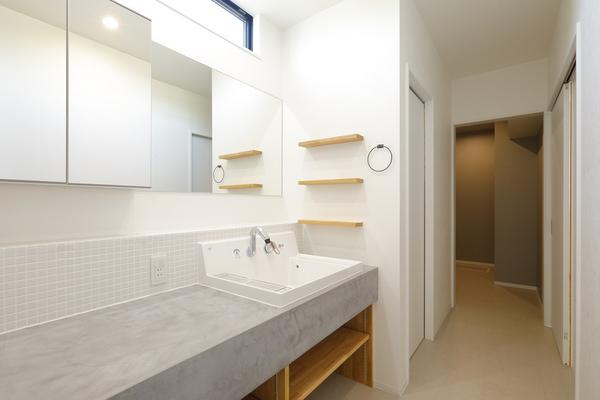 木の暖かさを感じる、白・グレーでまとめたナチュラルハウス。真っ白の壁とナラの無垢材、モールテックスやアイアン階段手摺などお気に入りのパーツでつくった素敵なお住まいです。